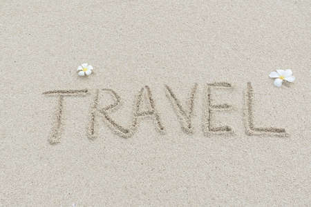 Travel written on the sandy beach
