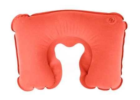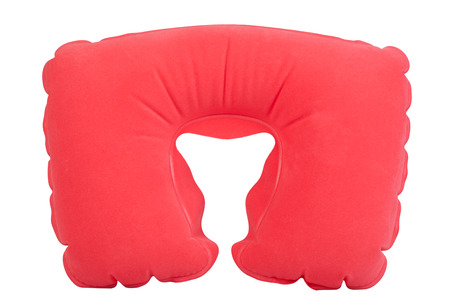 Red inflatable neck pillow on a white background