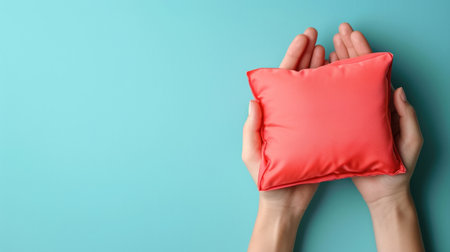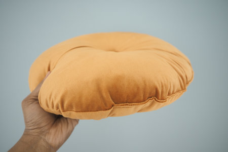 Soft orange cushion held by hand against a plain background