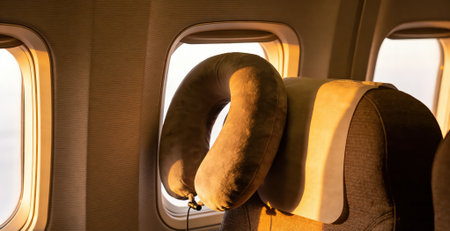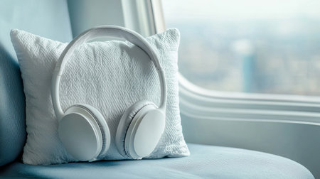 Experience the essence of travel comfort with a cozy kit featuring plush headphones on a soft pillow by a window, perfect for any journey.