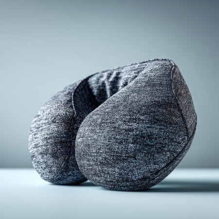A gray neck pillow designed for travel, providing comfort and support during long flights. Ideal for relaxation, this pillow enhances the travel experience.
