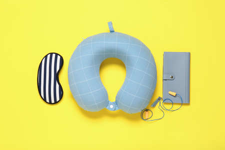 Travel pillow on color background