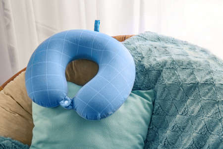 Travel pillow in armchair at home
