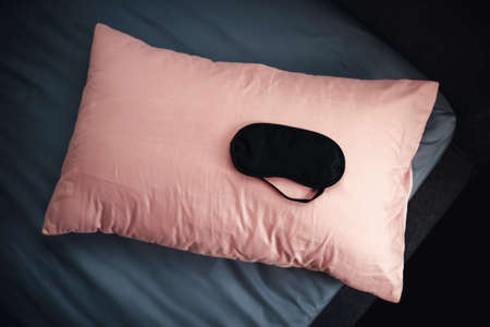 sleeping mask on a pink pillow. eye cover for insomnia.