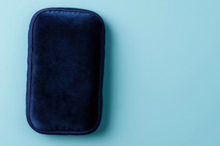 A navy blue padded case on a light blue background.