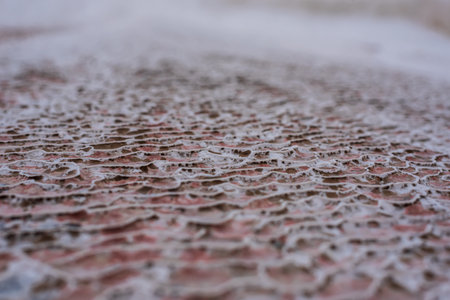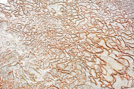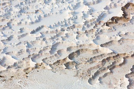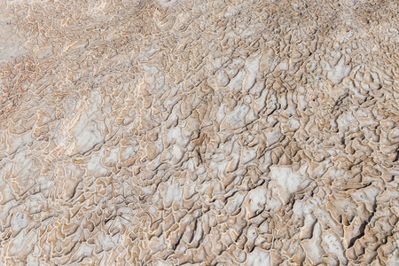 Textured background of abstract shape limestone deposits of travertine Pamukkale. Top view.