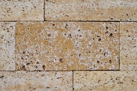 Sandstone building blocks. Rough texture of a brick wall made of sand and shells, appearance.