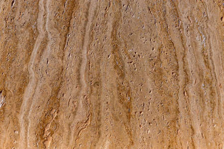 Travertine, texture of fragile stone. Limestone rock top view close-up. Grunge plaster texture for background. Natural rock patterns. Geology and quarrying