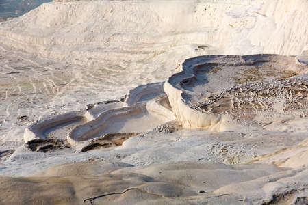 Pamukkale white mineral limestone natural pool. Geology landmark in Turkey