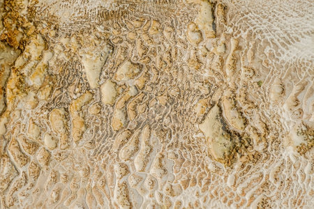 Textured background of abstract shape limestone deposits of travertine Pamukkale.