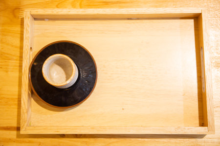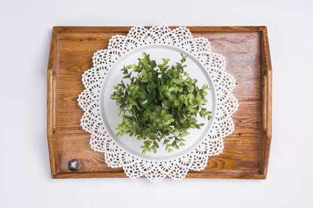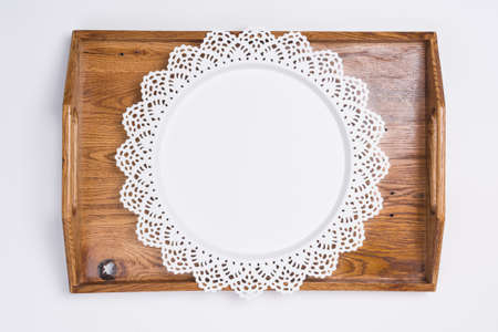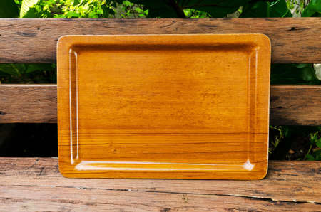 Wooden tray on the table.
