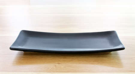 black plate on wood table background