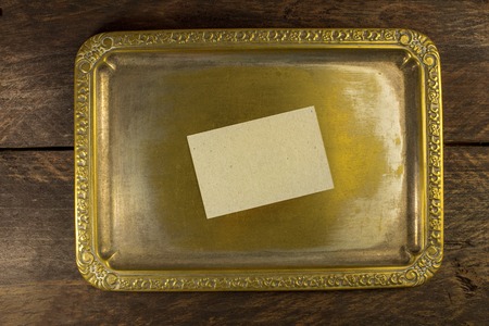 Business card on vintage tray, blank for copyspace