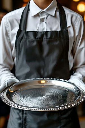 Waiter with a tray and plate, ready to serve
