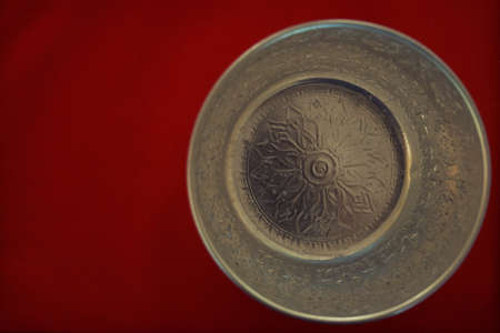 A bronze tray with geometric figures in the traditional execution of oriental culture