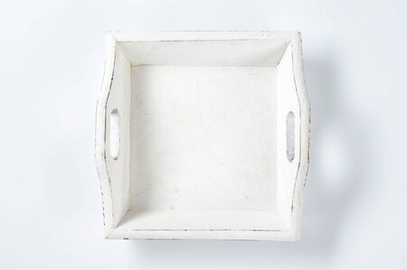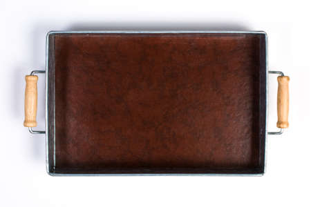 Galvanized Tin Box with Wooden Handles Isolated on White Top View