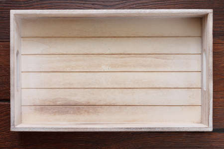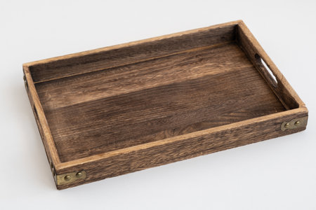 Rustic wooden tray on a white surface showcases natural grain patterns and craftsmanship