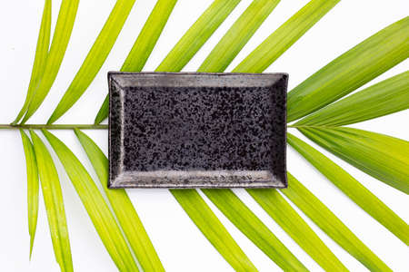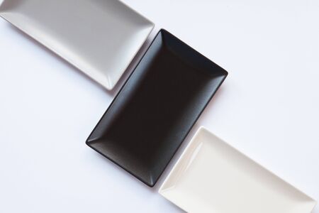 Empty rectangular plates, Japanese Tray set for Sushi on red background