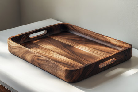 Elegant, handcrafted wooden tray with carved handles, ideal for serving food and drinks or displaying decorative items