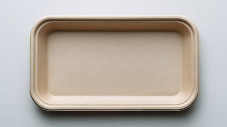 Ceramic tray isolated on white background. Serving plate. Classic beige design. Top view. Meal preparation.