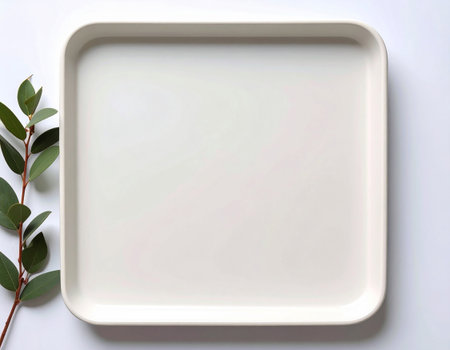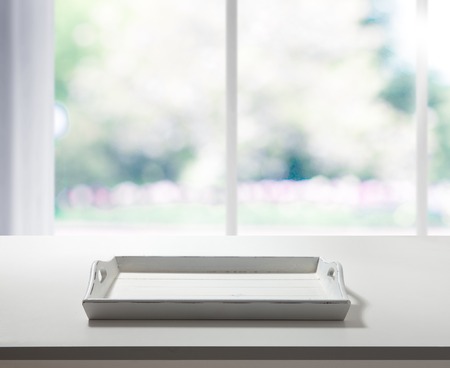 White tray on table top view.