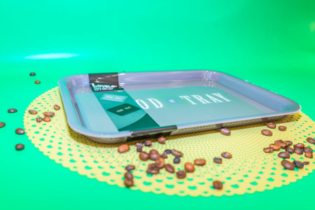 Realistic empty rectangular melamine tray for kitchen and dining use