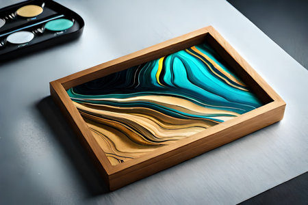 Marble abstract acrylic painting in the interior of the room. Marbling artwork texture. Agate ripple pattern. Gold powder. liquid marble art. color texture. Generate AI