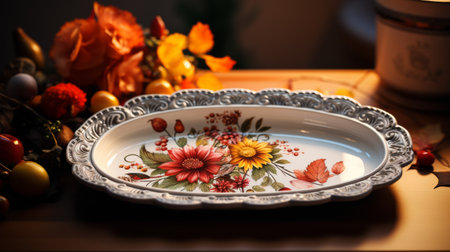 Bowl With Painted Flowers Resting on Table