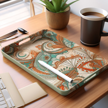 Get ready to be mesmerized by this astonishing wallpaper design titled 'Bohemian Bliss'. Inspired by boho-chic aesthetics, this unique design showcases intricate bohemian patterns and vibrant earthy tones. The fusion of realism and whimsical elements creates a captivating image that is sure to captivate viewers on microstock sites. Let your imagination flow and dive into the world of boho-chic with this mesmerizing paper tray design!