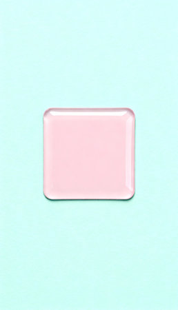 Minimalist pastel pink square object on light blue background with clean, modern, geometric design for contemporary concepts.
