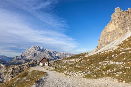A mountain trail in the Dolomites. Around the Tre Cime di Lavaredo. Italy.