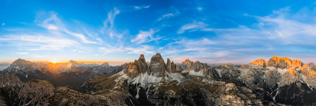 Panoramic view of the Three Peaks in the Dolomites, Italy.