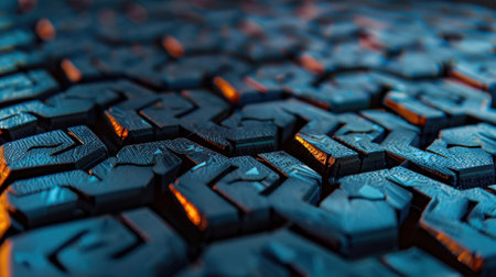 This image showcases a close-up view of an intricate textured surface, highlighting geometric patterns bathed in vibrant lighting. Ideal for creative projects.