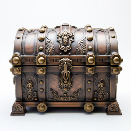 a chest, adorned with intricate carvings, sits proudly on a pristine white isolated background, showcasing its rustic charm and vintage appeal, perfect for home decor inspiration, antique furniture enthusiasts, and those seeking unique storage solutions. ai generated