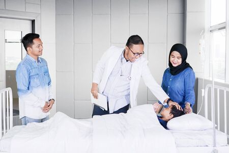 Physician checking patient health condition during ward round