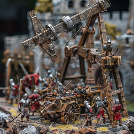 Medieval siege weapons, crossbows, onagers, catapults and battering rams