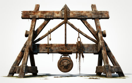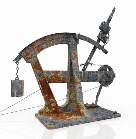 3d rendering of an old wooden catapult on a white background.