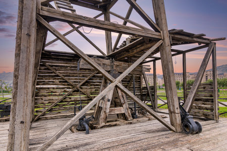 medieval wooden machine , part of the medieval construction machine, Italy
