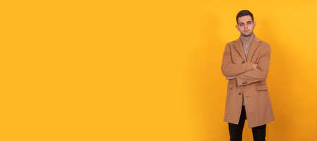 Portrait of a handsome man in a coat. Men's beauty, fashion.