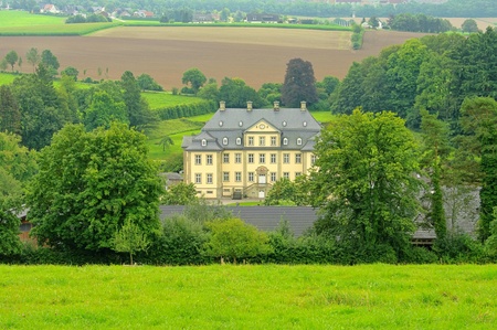 Panoramic view of idyllic rural landscape with church in Germany
