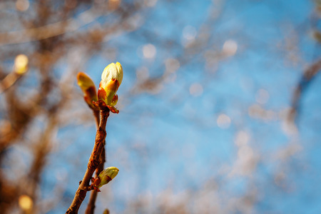 swelling Bud on the tree. spring background, copy space