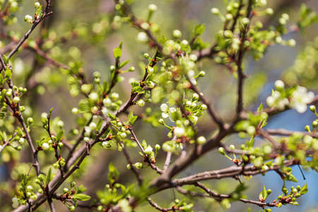 Blooming tree in spring. The buds open up