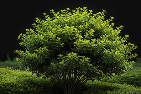 A small, healthy plant with bright green foliage stands out against a deep, dark background, highlighting its natural beauty and vibrant color.