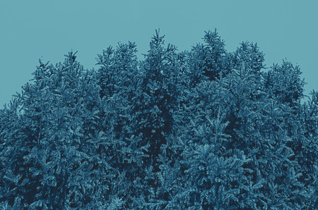 Christmas atmosphere. Green Christmas tree, coniferous tree. Blue, cold shade of needles.