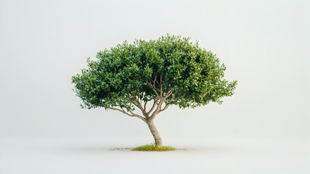 Mini tree model with round foliage and short trunk centered on white matte surface