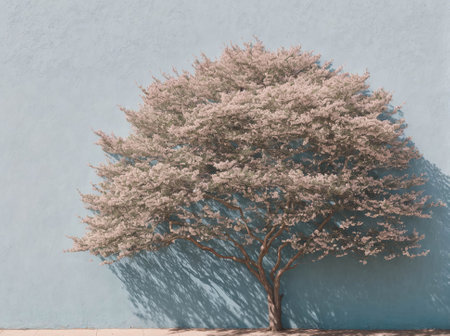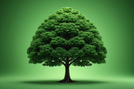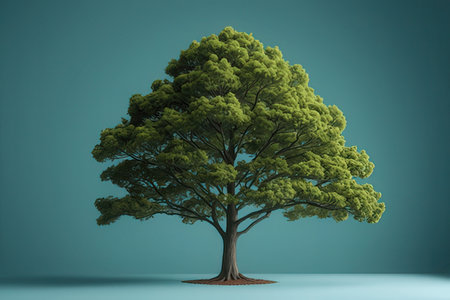 A stunning representation of a lush green tree with dense foliage, showcasing the beauty of nature against a soft blue background, perfect for minimalistic design.