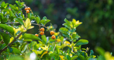 Duranta Erecta bush background, a tropical plant with yellow berries