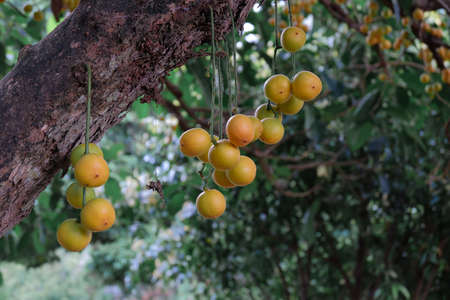 Baccaurea ramiflora Lour or Burmese grape tree , Mafai in Thai, sweet and sour fruit on tree .