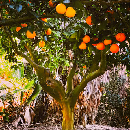 Orange garden with fruits