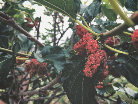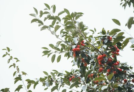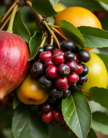 Close up of fresh fruits on the tree. Healthy food concept.